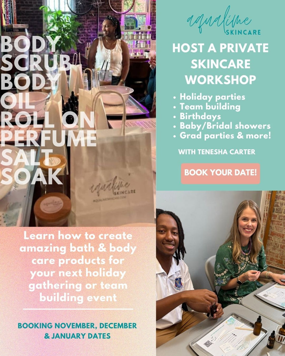 Join our skincare workshops and learn to blend your own roll on perfume, body oils, body scrubs & more! Our workshops are engaging with hands on experiences that anyone can enjoy.