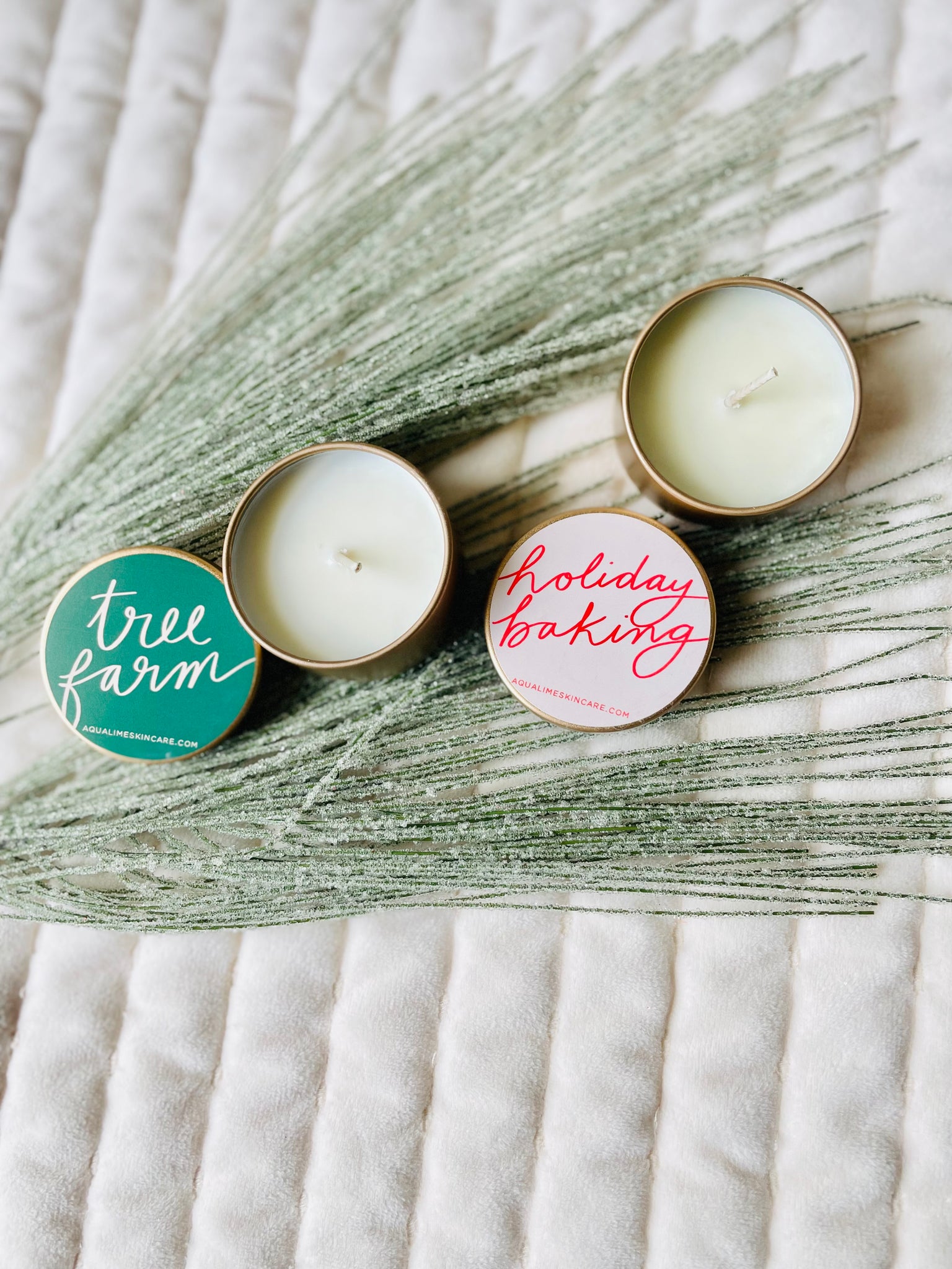 Our Limited Edition mini candle tins make a perfect little gift or stocking stuffer. These adorable mini candles come in colored metal tin with convenient lid. Made of pure cotton wick and natural soy wax for clean burn.